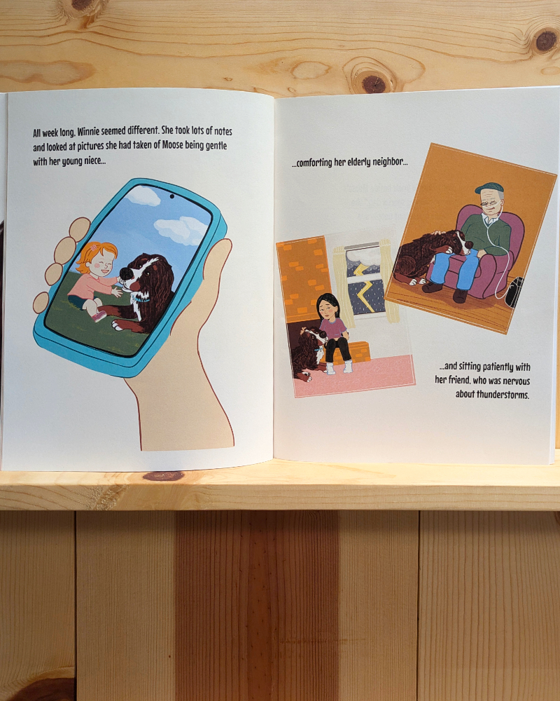 This is a sweet story about a Bernese Mountain Dog named Moose, for children 4 to 8 years old. This lovable dog has many great strengths, but he doesn’t seem to fit in anywhere! Until, one day, his owner realizes he would make an excellent therapy dog.